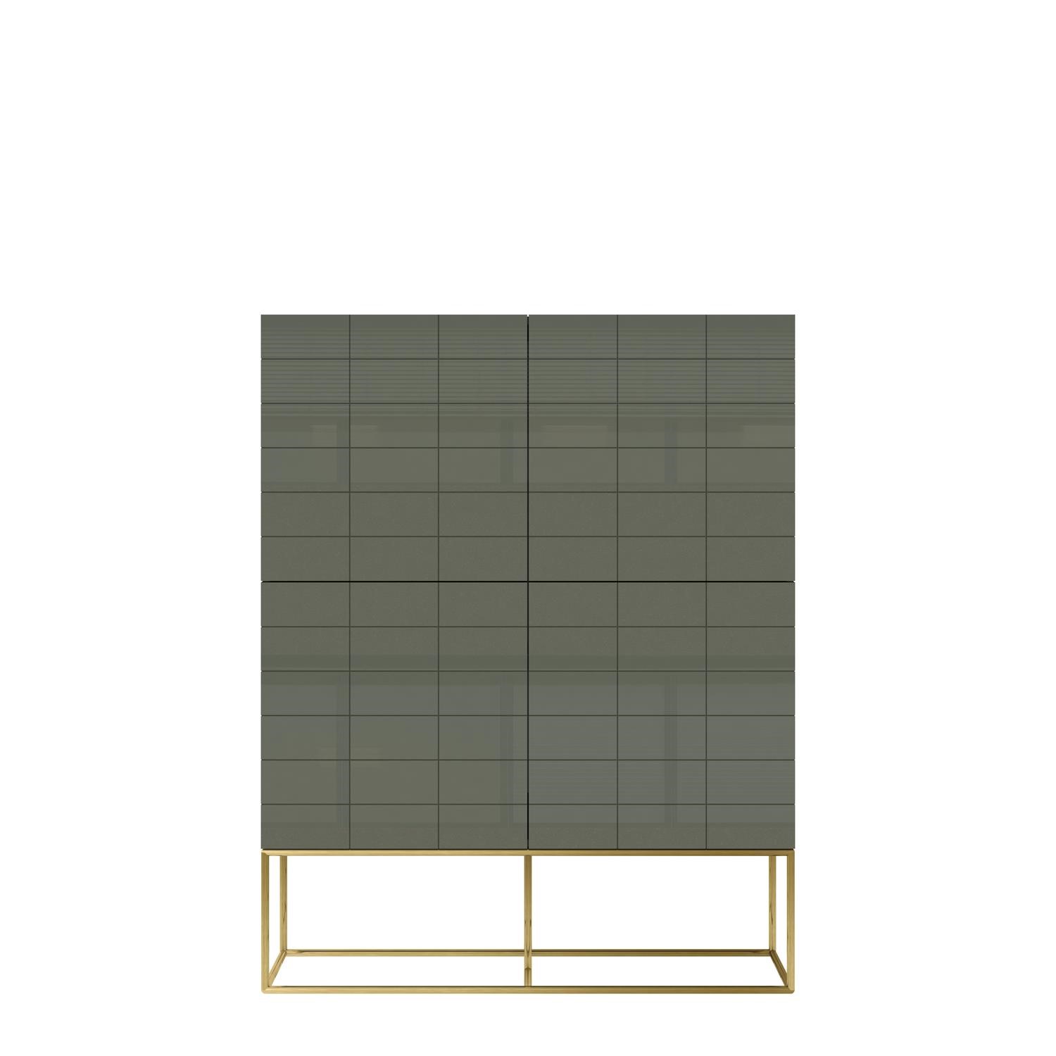 Komoda w stylu modern classic w kolorze cementowej zieleni z kontrastującymi nogami w kolorze złota wykonane ze stali nierdzewnej to esencja elegancji i nowoczesności. Jej harmonijne połączenie kolorów i materiałów tworzy niezwykłą kompozycję, która zachwyca zarówno wzornictwem, jak i funkcjonalnością. Korpus wykonany z płyty MDF na wysoki połysk dodaje komodzie elegancji i nowoczesności, podczas gdy kontrastujące złote nogi z stali nierdzewnej nadają jej subtelności i luksusu. Charakterystyczne fronty 3D dodają głębi i wyrazistości, tworząc efektowny wizualny efekt.