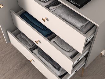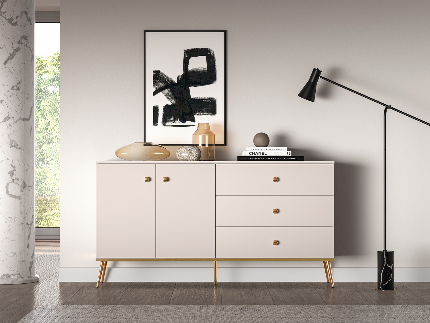 Komoda Selgin 03 to pojemny mebel, który łączy elegancję z praktycznością. Trzydrzwiowa konstrukcja z systemem cichego domykania i metalowymi uchwytami zapewnia komfort użytkowania. Wysokie nóżki nadają lekkości i ułatwiają utrzymanie czystości.