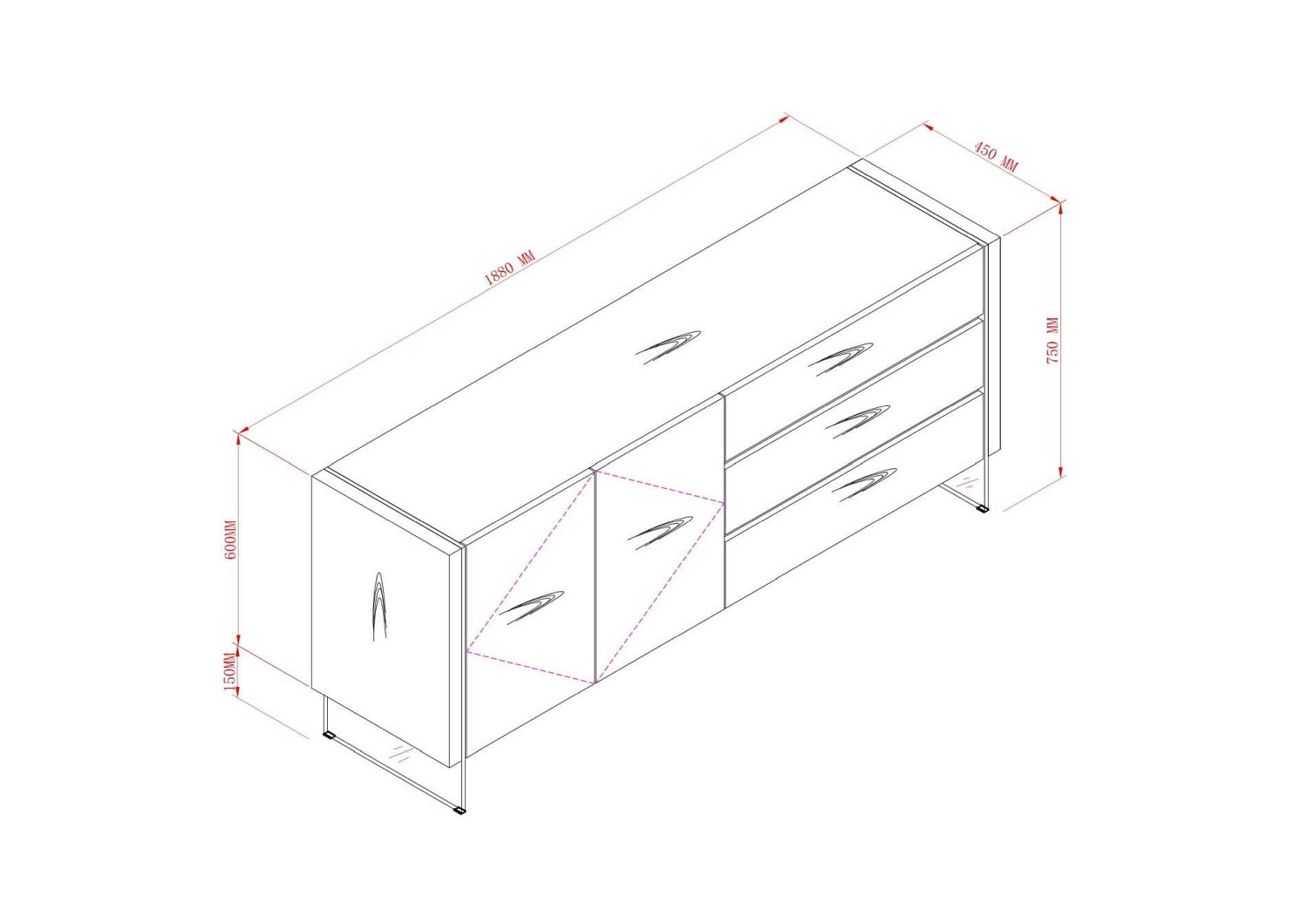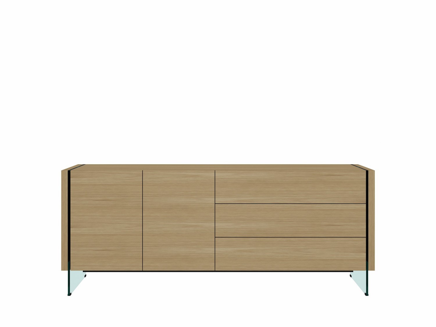 Nowoczesna komoda w kolorze dębowym, to połączenie prostej formy z eleganckim akcentem w postaci nóg ze szkła hartowanego. Idealna propozycja dla osób szukających ekskluzywnych mebli w wysokim standardzie. Produkt posiada trzy funkcjonalne szuflady z system soft close i dwoje drzwi.