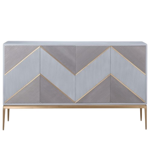 Komoda Stilig ST334 to unikatowy wybór, idealny dla osób ceniących nowoczesne wzornictwo z klasycznym akcentem. Korpus w odcieniu szarości, ryflowane drewno oraz subtelna, złota listwa dekoracyjna przyciągają uwagę. Komoda posiada system push to open, soft close oraz regulowane półki, co czyni ją praktyczną i stylową opcją do eleganckich wnętrz.