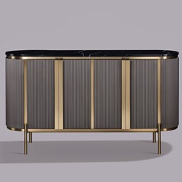 Komoda Stilig ST384A to połączenie klasyki z nowoczesnością. Grafitowy korpus ozdobiony ryflowanym wzorem oraz czarny marmurowy blat tworzą wyrafinowany wygląd. Złote akcenty oraz system soft close sprawiają, że jest to nie tylko funkcjonalny, ale także bardzo elegancki dodatek do salonu lub sypialni.