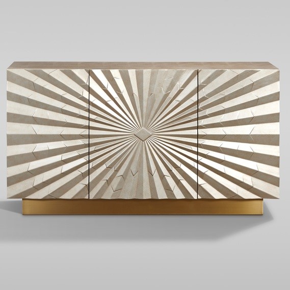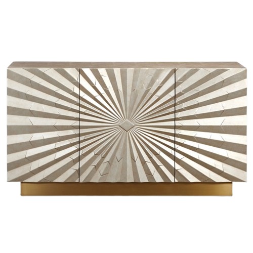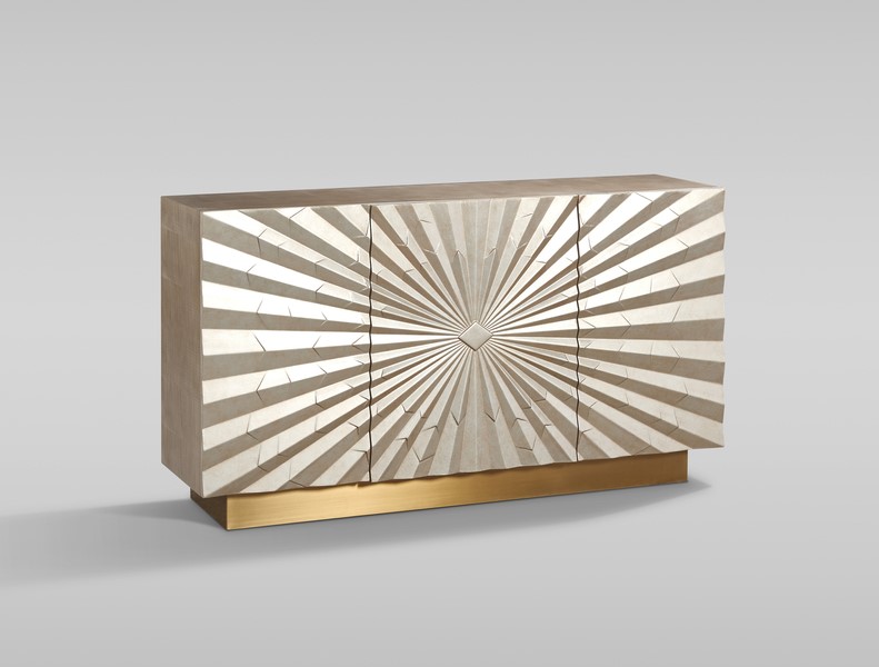Komoda ST802 od Stilig łączy subtelną elegancję z inspiracją sztuką origami. Jej oryginalny, parametryczny front w kolorze szampańskiego złota wprowadza wyjątkowy akcent do wnętrza. Praktyczna funkcjonalność, w tym system soft close i regulowane półki, czyni ją stylowym, ale i funkcjonalnym wyborem do każdego salonu czy sypialni.