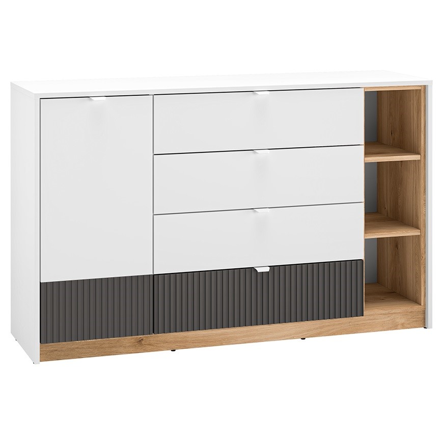 Komoda to funkcjonalny mebel, który wprowadza ład i estetykę do każdej przestrzeni mieszkalnej. Dzięki starannie wykonanym szufladom i półkom komoda pozwala na wygodne przechowywanie ubrań, akcesoriów czy dokumentów. Solidne materiały gwarantują trwałość oraz stylowy wygląd, dzięki czemu mebel doskonale sprawdzi się zarówno w salonie, jak i sypialni czy biurze.