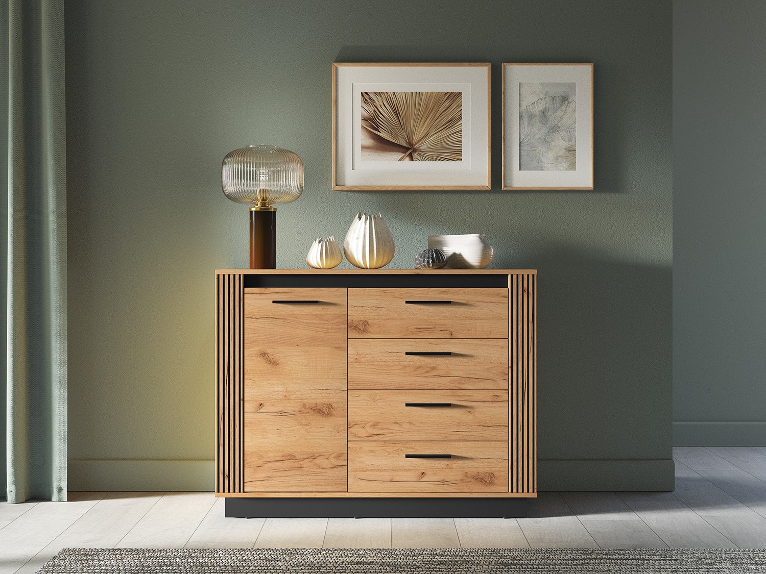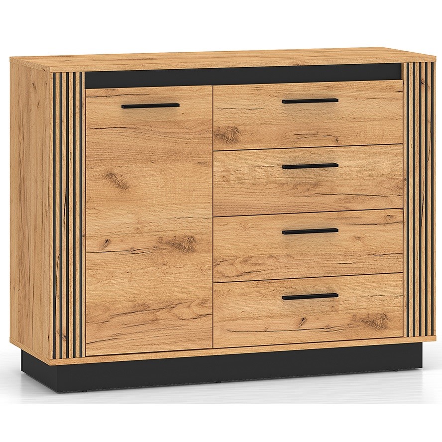 Komoda to funkcjonalny mebel, który wprowadza ład i estetykę do każdej przestrzeni mieszkalnej. Dzięki starannie wykonanym szufladom i półkom komoda pozwala na wygodne przechowywanie ubrań, akcesoriów czy dokumentów. Solidne materiały gwarantują trwałość oraz stylowy wygląd, dzięki czemu mebel doskonale sprawdzi się zarówno w salonie, jak i sypialni czy biurze.