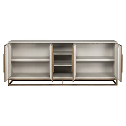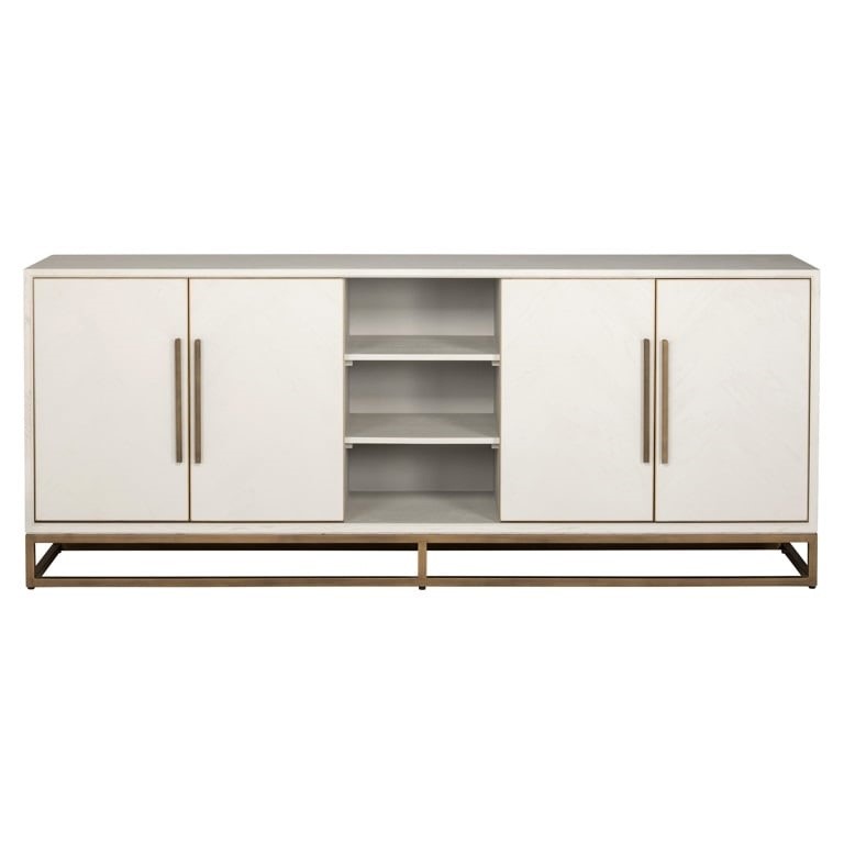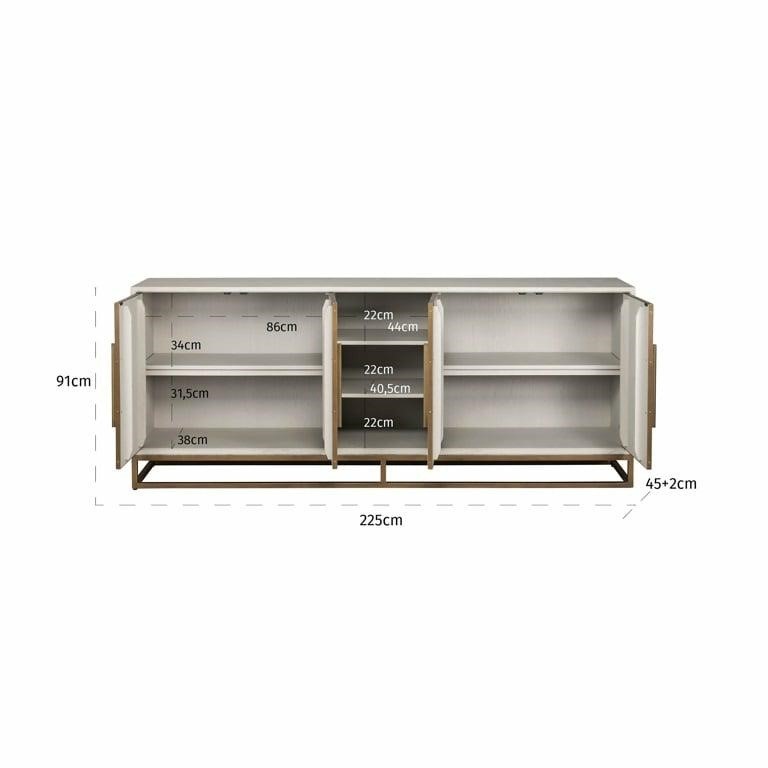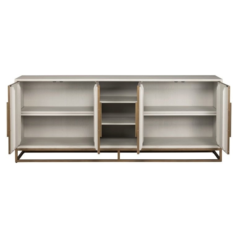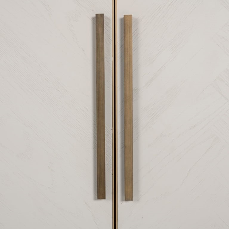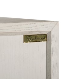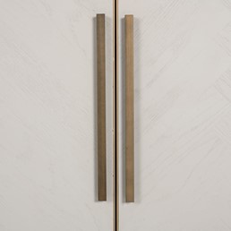 Kolekcja Whitebone charakteryzuje się modnym wykończeniem z forniru dębowego Verona Grey i metalowymi, mosiężnymi detalami.