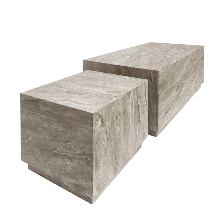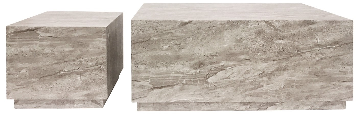 Ten elegancki zestaw stolików kawowych Dice składa się z dwóch stolików o różnych wysokościach, wykonanych z solidnego marmuru w kolorze szarym. Stylowy design i wysoka jakość wykonania sprawiają, że będą doskonałym dodatkiem do nowoczesnego wnętrza. Idealne do użytku zarówno w salonie, jak i w sypialni. Dzięki uniwersalnemu kolorowi będą pasować do wielu aranżacji. Dodatkowo, marmurowa powierzchnia jest łatwa w czyszczeniu i odporna na uszkodzenia. Zestaw stolików kawowych Dice to nie tylko praktyczne, ale również stylowe rozwiązanie do Twojego mieszkania.