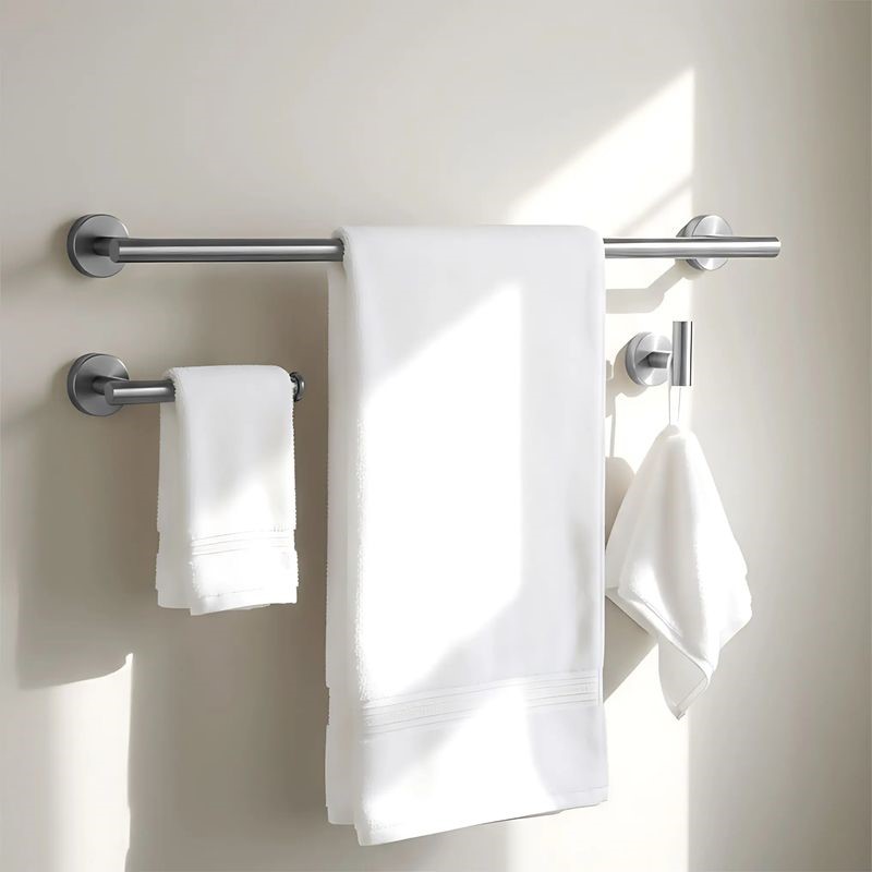 Komplet wieszaków łazienkowych ARI to praktyczne rozwiązanie do każdej łazienki, które pozwala na wygodne przechowywanie ręczników oraz akcesoriów. Zestaw zapewnia spójny wygląd wnętrza i ułatwia organizację przestrzeni. Nowoczesna forma oraz estetyczne wykończenie sprawiają, że doskonale wpisuje się w aktualne trendy aranżacyjne. Wysokiej jakości materiały gwarantują trwałość oraz odporność na wilgoć. Prosty montaż pozwala szybko i bezproblemowo zamontować wszystkie elementy.