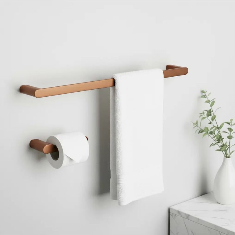 Komplety wieszaków łazienkowych MATI, dostępne w różnych kolorach (czarny, złoty, miedziany, złoty szczotkowany), to eleganckie rozwiązanie do każdej łazienki. Dzięki prostemu, ale nowoczesnemu wyglądowi, wieszaki wpasowują się w różne style aranżacyjne. Wykonane z trwałych materiałów, zapewniają solidność i długowieczność, a ich design wprowadza do łazienki subtelną elegancję i styl.