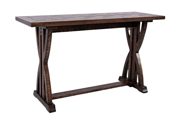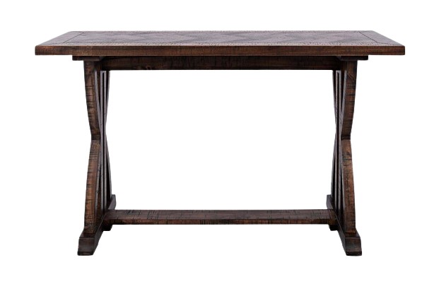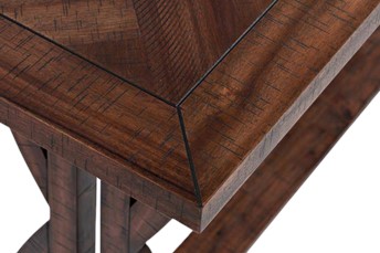 Elegancki stół w całości z drewna w klasycznym stylu prowansalskim z zaokrąglonymi poprzecznymi nogami, ciemny dąb. Solidny blat stołu ma wstawkę w jodełkę. Strukturalne meble drewniane są widoczne z charakterystycznym efektem postarzenia w postaci wgnieceń i drobnych zadrapań, co nadaje całości szorstkiego akcentu połączonego z gładką, płaską powierzchnią. Ponadczasowy design i elegancki kształt doda elegancji każdemu wnętrzu.