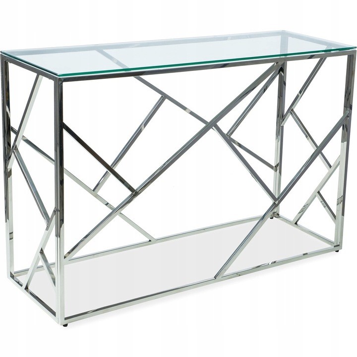 Konsolka Escada C to odważne połączenie kolorystyczne i nieprzeciętna koncepcja designerska. Jej blat stanowi tafla hartowanego szkła, podparta na stabilnym stelażu wykonanym z metalu w kolorze chromu. Dzięki takiemu połączeniu stanowi ciekawy, wyrazisty element dekoracyjny każdego salonu, pokoju czy sypialni.