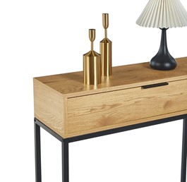 Konsola prostokątna to elegancki i funkcjonalny mebel, idealny do uzupełnienia aranżacji wnętrza. Cechuje się smukłą, prostokątną konstrukcją, która pozwala na ustawienie jej przy ścianie, nie zajmując zbyt wiele miejsca. Jej minimalistyczny design nadaje pomieszczeniu elegancji i subtelności, a jednocześnie tworzy idealne miejsce na wyeksponowanie dekoracji, książek lub innych drobnych przedmiotów.
