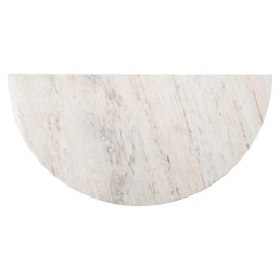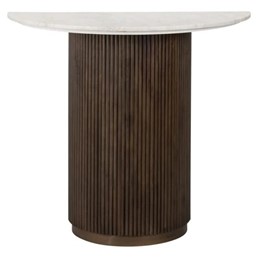 Piękny blat zdobi biały marmur, a podstawę drewniane lamele.