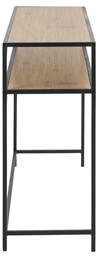 Konsola Seaford Slim w kolorze dębu naturalnego to eleganckie i stylowe rozwiązanie do salonu, przedpokoju czy sypialni. Ten minimalistyczny mebel charakteryzuje się prostą formą i delikatnymi detalami, które nadają mu nowoczesny wygląd. Konsola Seaford Slim wykonana jest z wysokiej jakości drewna dębowego, które zapewnia trwałość i odporność na uszkodzenia. Dębowe wykończenie nadaje meblowi naturalny i ciepły wygląd, który doskonale komponuje się z różnymi stylami aranżacyjnymi.Konsola Seaford Slim posiada praktyczną półkę na dole, na której można przechowywać drobne przedmioty czy ozdoby. Dzięki swoim kompaktowym wymiarom, idealnie sprawdzi się w pomieszczeniach o mniejszej przestrzeni.