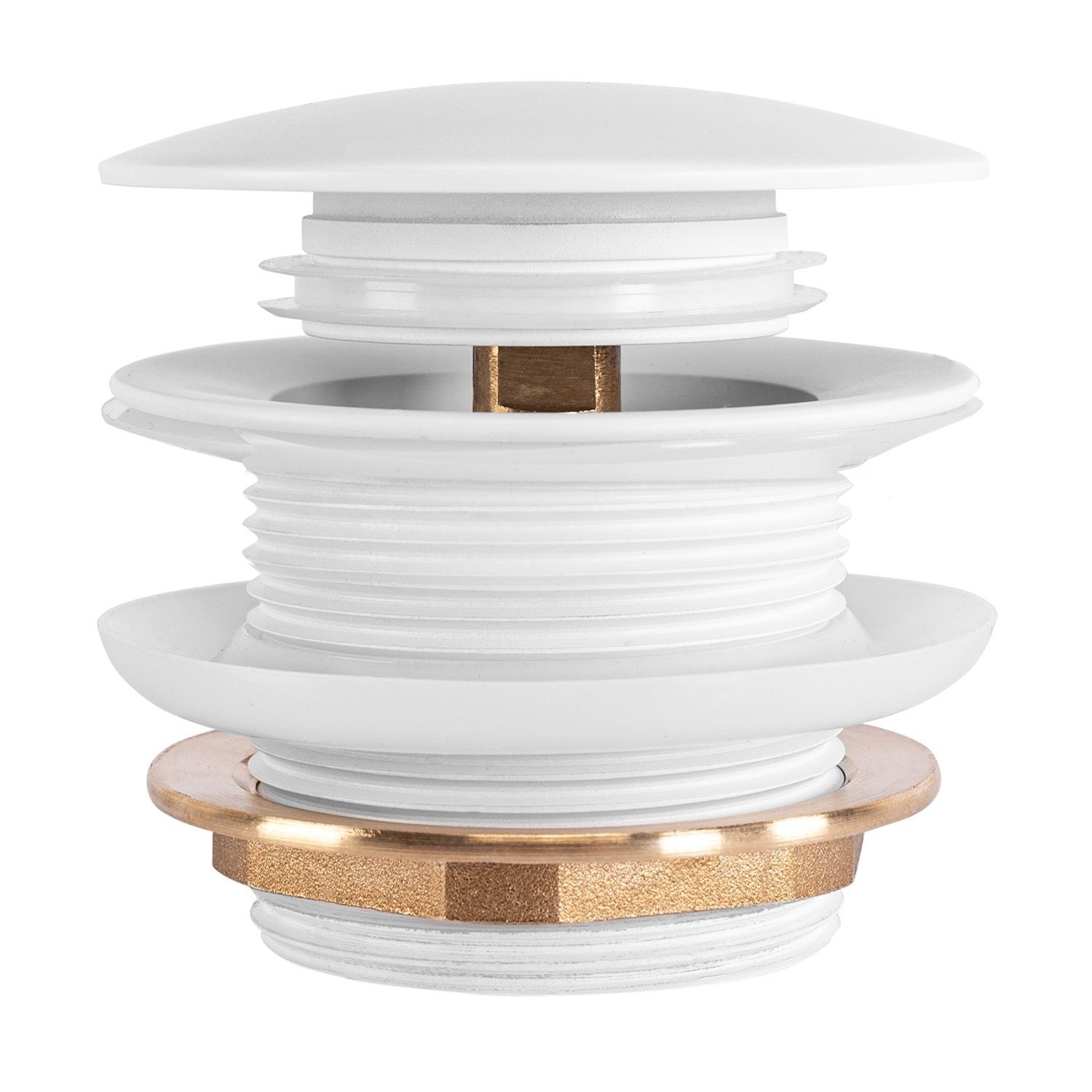 Korek klik-klak został zaprojektowany z myślą o maksymalnej wygodzie użytkowania. Mechanizm klik-klak pozwala na łatwe otwieranie i zamykanie odpływu za pomocą jednego naciśnięcia. Uniwersalny korek klik-klak pasuje do większości standardowych umywalek i wanien, dzięki czemu jest niezwykle wszechstronny. Jego prosty, minimalistyczny design sprawia, że doskonale komponuje się zarówno z nowoczesnymi, jak i klasycznymi wnętrzami łazienek. Korek jest łatwy w montażu i demontażu, co pozwala na szybkie i bezproblemowe jego zastąpienie w razie potrzeby.