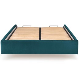 Korpus do łóżka MODULO z pojemnikiem na pościel i podnoszonym stelażem, wymiary : 208/175/44cm, odstęp między listwami stelaża 2,5 cm umożiwia zastosowanie wszyskich typów materacy, materiał: tkanina - velvet, kolor: ciemny zielony (Monolith 37), łóżko bez materaca. Do skompletowania kompletnego łóżka należy zamówić korpus łóżka, wezgłowie łóżka oraz nóźki do łóżka.