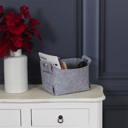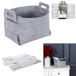 Produkt wykonany z wysokiej jakości filcu, odpornego na wilgoć i zabrudzenia. Składane pudełko o wymiarach S, Doskonałe do przechowywania drobnych przedmiotów. Kolor szary, pasujący do wielu wnętrz. Estetyczny i praktyczny dodatek do domu. Łatwy w czyszczeniu i przechowywaniu Można go również złożyć i przenosić w podróżyJest składane, co pozwala zaoszczędzić miejsce, gdy nie jest używane. Dzięki swojej solidnej konstrukcji z filcu, kosz/pudełko jest wytrzymałe i trwałe. Można w nim przechowywać biżuterię, klucze, drobne przedmioty kuchenne czy kosmetyki. Dodatkowo, szary kolor sprawia, że będzie pasować do większości wnętrz, nadając im eleganckiego wyglądu.