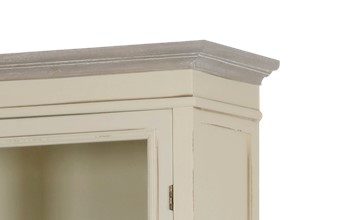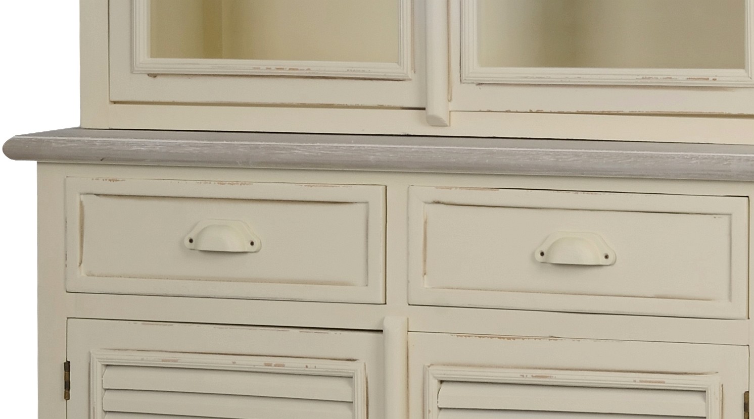 Kremowa komoda w stylu vintage z dwudrzwiową nadstawką.