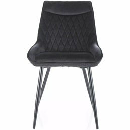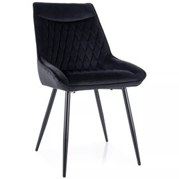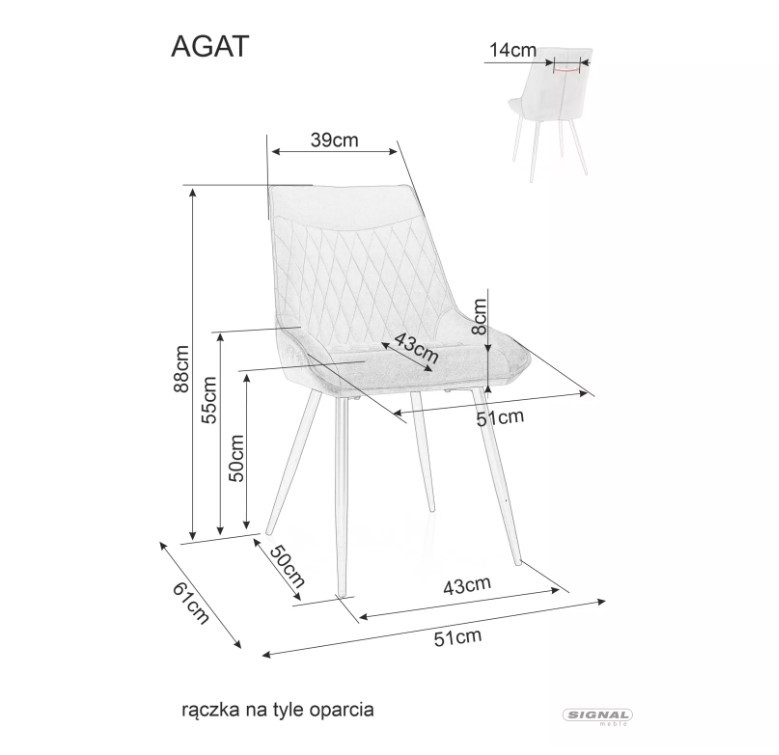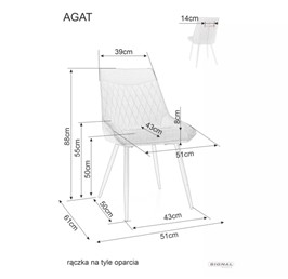 Krzesło Agat Velvet to kwintesencja elegancji i komfortu. Tapicerka wykonana z miękkiego aksamitu Bluvel w kolorze głębokiej czerni oraz matowy, metalowy stelaż zapewniają zarówno trwałość, jak i stylowe wykończenie każdego wnętrza. Praktyczna rączka na tyle oparcia ułatwia przestawianie krzesła, czyniąc je idealnym dodatkiem do każdego domu czy biura, gdzie design idzie w parze z funkcjonalnością.