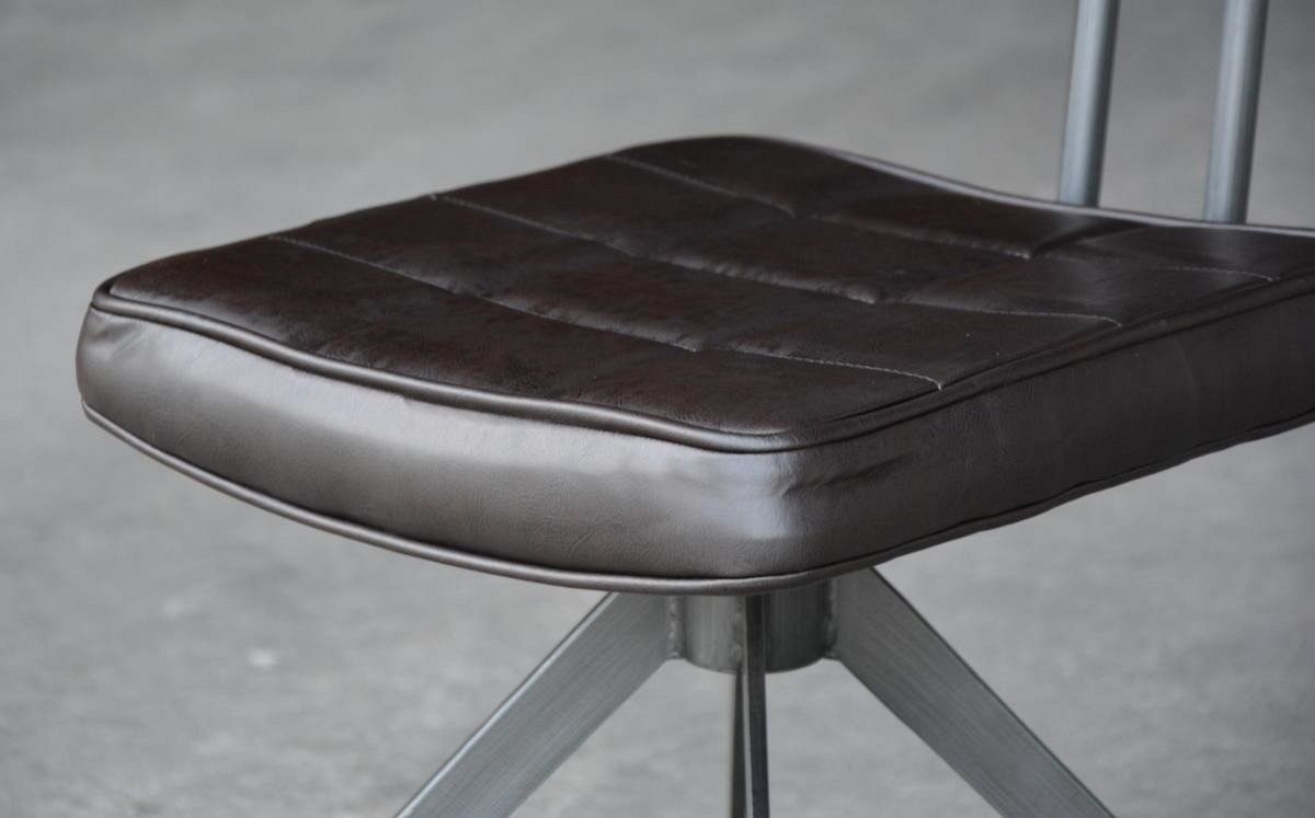Stylowe i eleganckie metalowe krzesło w stylu retro o pięknym brązowym zabarwieniu. Krzesło posiada eko skórzaną tapicerkę.