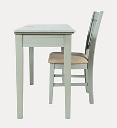 Krzesło tapicerowane w odcieniu szaromiętowym to wyraz elegancji i klasyki w każdym pomieszczeniu. Jego prosty, ale zarazem efektowny design nadaje mu wyjątkowego charakteru. Plecy krzesła zdobią pionowe listewki, dodając mu subtelnej ozdobności. To delikatne detale nadają krzesłu wyjątkowego uroku i charakteru, będąc jednocześnie eleganckim akcentem. Siedzisko, w kremowym odcieniu, dodaje krzesłu lekkości i subtelności. Tapicerowane siedzisko nie tylko zapewnia wygodę użytkowania, ale również podkreśla wysoką estetykę i komfort krzesła.