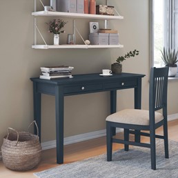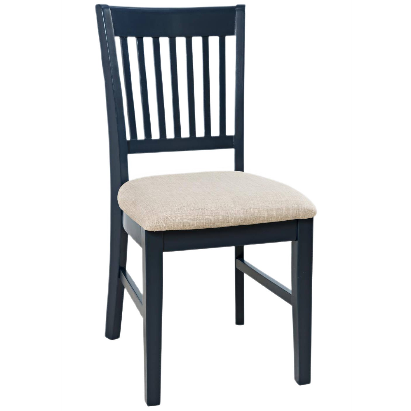 Krzesło tapicerowane w odcieniu granatowym to wyraz elegancji i klasyki w każdym pomieszczeniu. Jego prosty, ale zarazem efektowny design nadaje mu wyjątkowego charakteru. Plecy krzesła zdobią pionowe listewki, dodając mu subtelnej ozdobności. To delikatne detale nadają krzesłu wyjątkowego uroku i charakteru, będąc jednocześnie eleganckim akcentem. Siedzisko, w kremowym odcieniu, dodaje krzesłu lekkości i subtelności. Tapicerowane siedzisko nie tylko zapewnia wygodę użytkowania, ale również podkreśla wysoką estetykę i komfort krzesła.