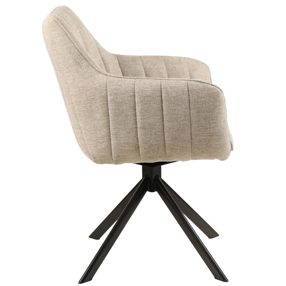 Tapicerka z tkaniny Brego w odcieniu jasnego beżu (31) nadaje mu subtelnego uroku i sprawia, że łatwo dopasuje się do wielu aranżacji. Metalowe elementy krzesła mają matowe wykończenie w kolorze czarnym, co dodaje mu nowoczesności i sprawia, że prezentuje się bardzo stylowo.