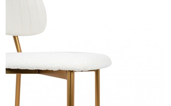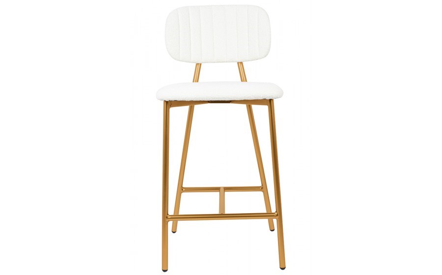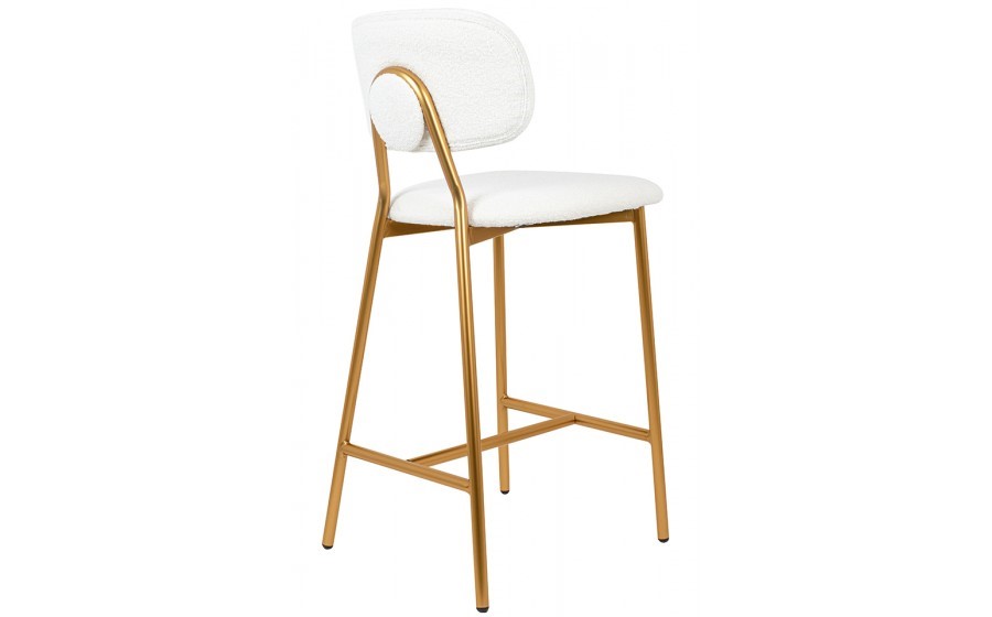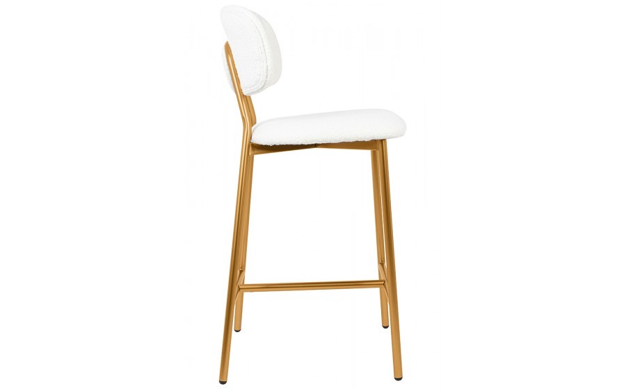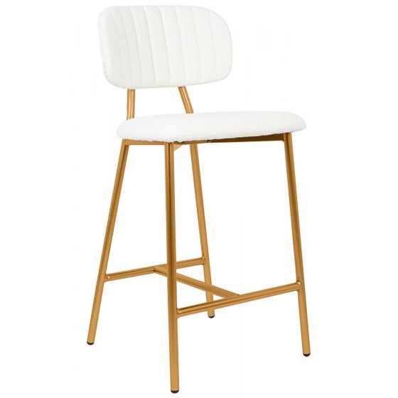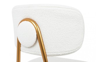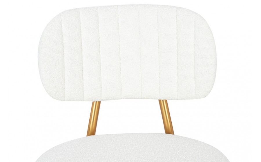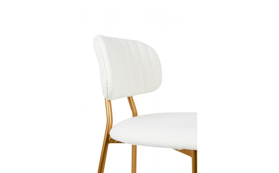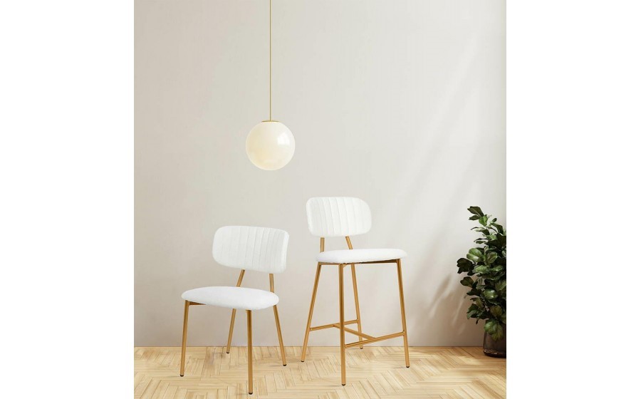 Krzesło barowe FABIOLA BOUCLE to perfekcyjne połączenie elegancji, wygody i nowoczesnego designu, które wniesie do każdego wnętrza niepowtarzalny urok. Oparcie i siedzisko tego wyjątkowego krzesła są tapicerowane przyjemną i miękką w dotyku tkaniną boucle, która nadaje mu nie tylko luksusowego wyglądu, ale także zapewnia wyjątkowy komfort siedzenia. Biel tej tkaniny dodaje krzesłu lekkości, jednocześnie podkreślając jego elegancki charakter. Podstawa krzesła została zbudowana z metalu, którego lakierowane wykończenie w satynowym złocie nadaje mu niezwykłej finezji. To połączenie białego boucle i złotej podstawy tworzy harmonijną całość, która doskonale wpisuje się w trendy nowoczesnego designu. Przeszycia na oparciu nie tylko nadają krzesłu charakterystyczny, nowoczesny wygląd, ale także podkreślają precyzję wykonania. Struktura tkaniny boucle sprawia, że wnętrze staje się nie tylko szykowne, ale również przytulne, a krzesło FABIOLA BOUCLE staje się nie tylko meblem, ale także wyrazem osobistego stylu.