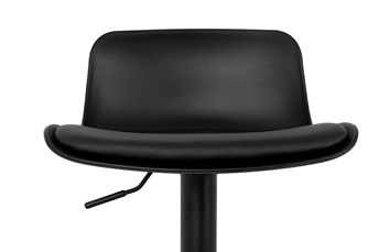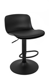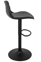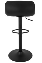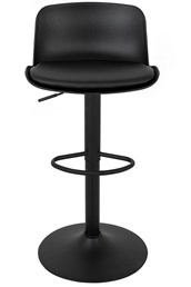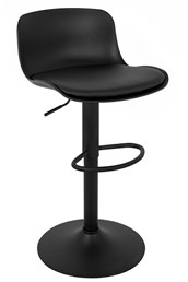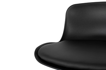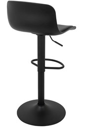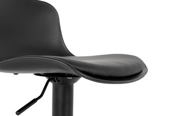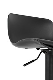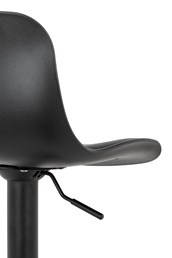 Siedzisko z poduszką zostało wykonane z tworzywa sztucznego, a postawa z metalu w kolorze czarnym.