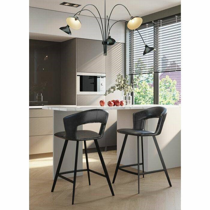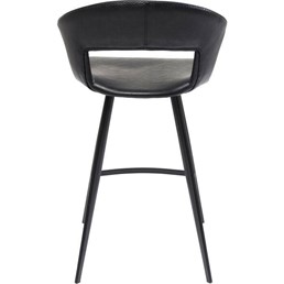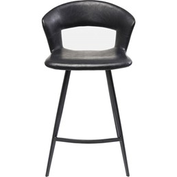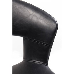 - Designerskie, czarne siedzisko wykonano z poliuretanu imitującego skórę w stylu Vintage.
