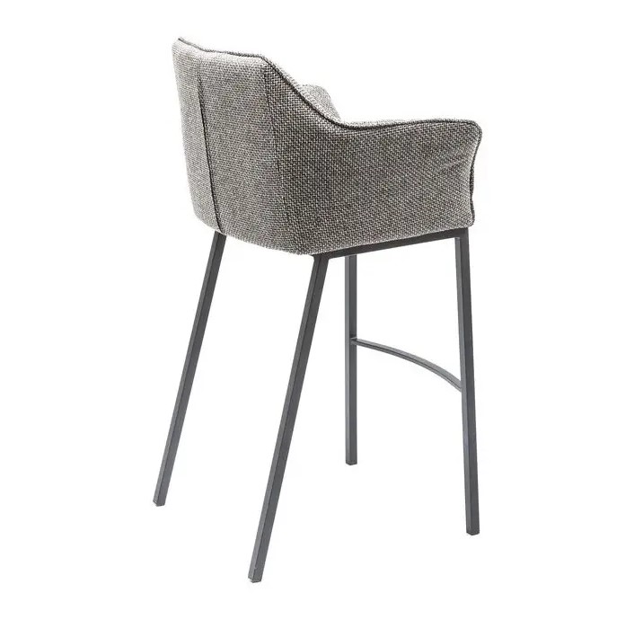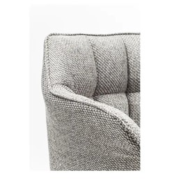 - Wygodne siedzisko o kształcie muszli z zaokrąglonymi podłokietnikami wykonano z bogatej tkaniny poliestrowej a czarną matową podstawę ze stali.