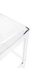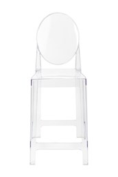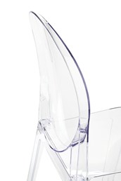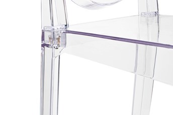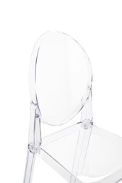 Transparentne oparcie nie przytłacza wnętrza, doskonale sprawdzi się w niewielkich pomieszczeniach.