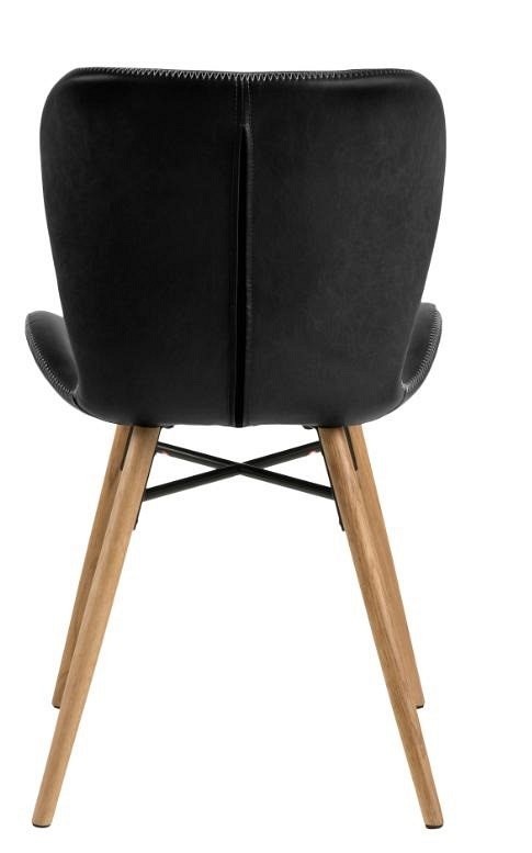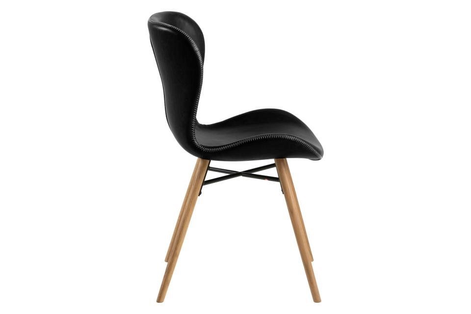 Krzesło Black Batilda Retro to idealne rozwiązanie do salonu lub jadalni. Solidna podstawa wykonana z dębu olejnego, wzmocniona metalowym krzyżem, zapewni stabilność podczas użytkowania. Duże wrażenie robi czarne siedzisko z ekoskóry z grubszym wykończeniem.