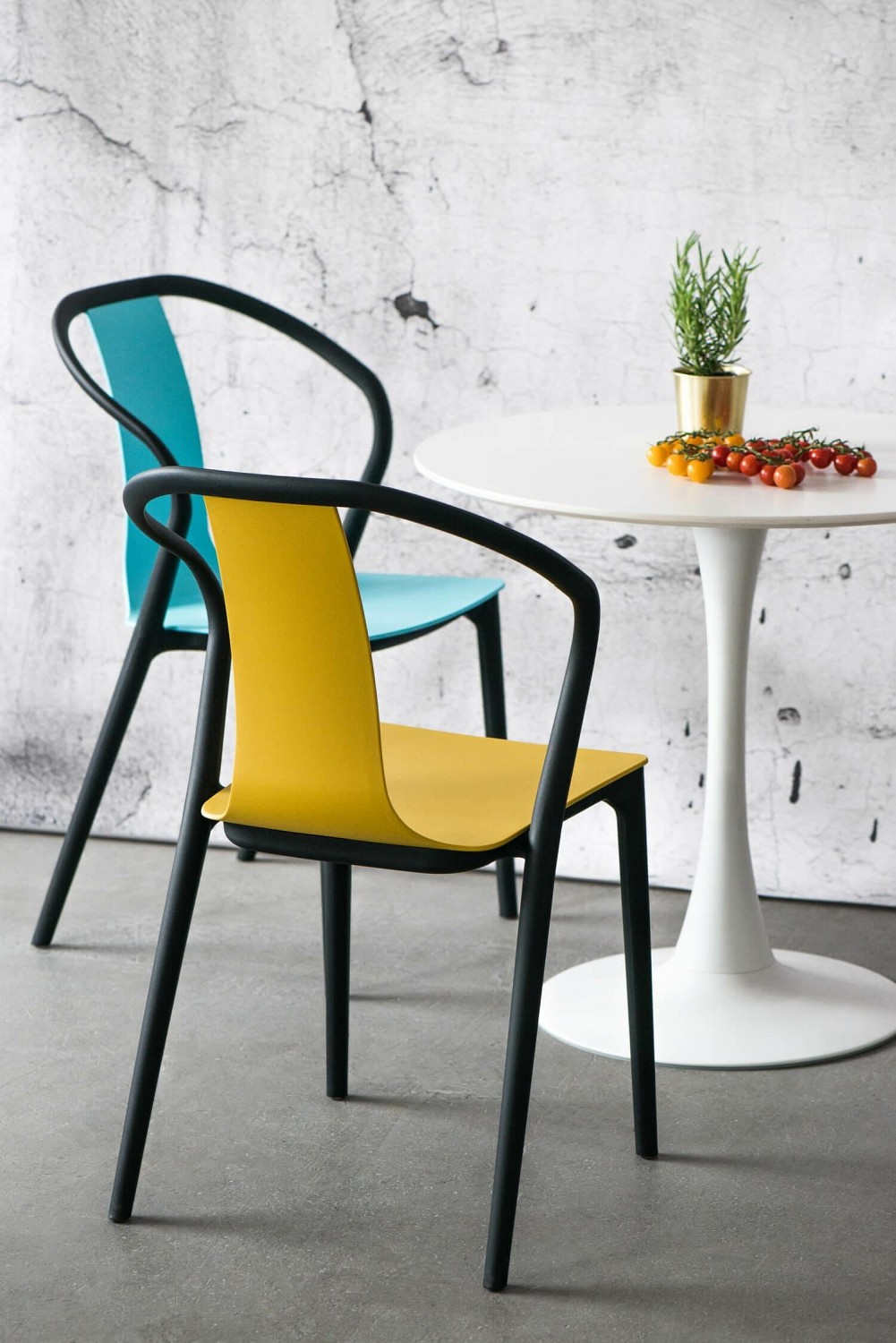 Nowoczesne krzesło Bella wykonane zostało z niezwykle wytrzymałego tworzywa. Siedzisko w kolorze białym doskonale komponuje się z czarną podstawą. Polipropylen użyty w krześle ma matowe wykończenie, jest łatwy w czyszczeniu i odporny na zabrudzenia, natomiast wykonane z białego polipropylenu siedzisko wykończone zostało w półmacie. Krzesło zaprojektowane zostało w stylu nowoczesnym. Krzesło jest lekkie, waży zaledwie 5kg, jego maksymalne obciążenie wynosi 120kg. Krzesło można sztaplować, nie wymaga montaż. Wysokość podłokietników: 73,5cm Wysokość siedziska: 47,5cm Głębokość siedziska: 42,5 Szerokość siedziska: 42,5cm Max. ilość sztuk w kartonie: 4 Wymiary kartonu 72cmx55cmx103cm