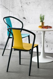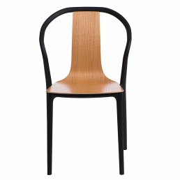 Nowoczesne krzesło Bella wykonane zostało z niezwykle wytrzymałego tworzywa oraz drewna. Siedzisko w kolorze naturalnym doskonale komponuje się z czarną podstawą. Polipropylen użyty w krześle ma matowe wykończenie, jest łatwy w czyszczeniu i odporny na zabrudzenia, natomiast wykonane ze sklejki siedzisko wykończone zostało w półmacie. Krzesło zaprojektowane zostało w stylu nowoczesnym. Krzesło jest lekkie, waży zaledwie 5kg, jego maksymalne obciążenie wynosi 100kg. Krzesło można sztaplować, nie wymaga montażu. Wysokość podłokietników: 73,5cm Wysokość siedziska: 47,5cm Głębokość siedziska: 42,5 Szerokość siedziska: 42,5cm Max. ilość sztuk w kartonie: 4 Wymiary kartonu 72cmx55cmx103cm