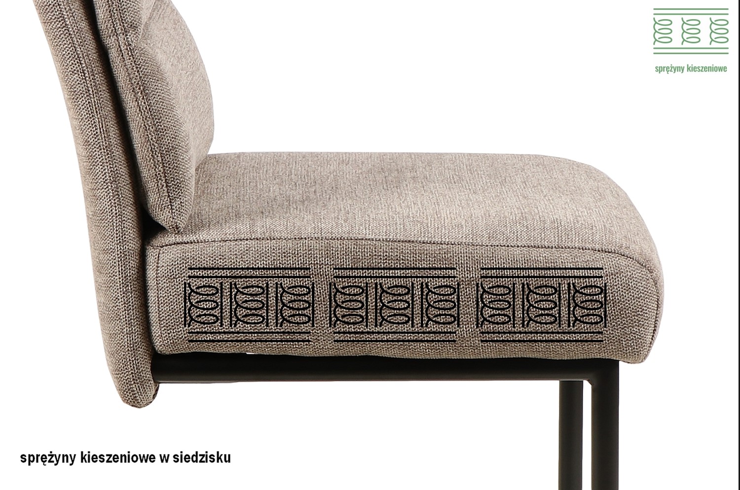 Krzesło o nazwie "Brego" to eleganckie i praktyczne rozwiązanie do nowoczesnych wnętrz. Tkanina użyta do tapicerki ma piękny kolor Ciemny Szary (18), nadając mu stylowy i neutralny wygląd. Stelaż krzesła wykonany jest z matowego, czarnego metalu, co dodaje mu solidności i nowoczesnego charakteru.