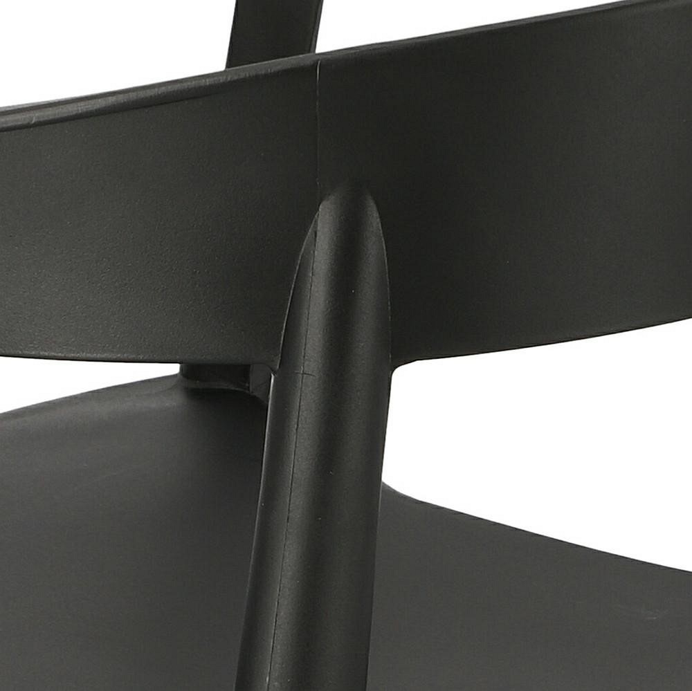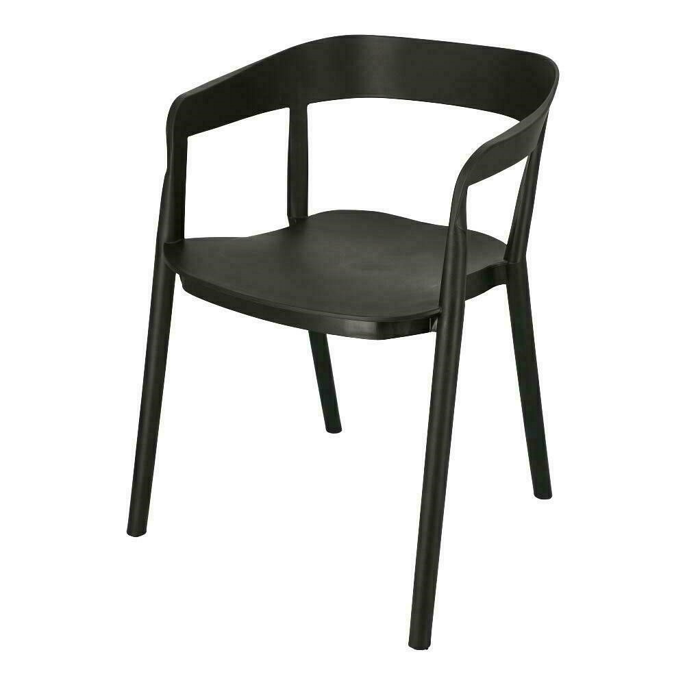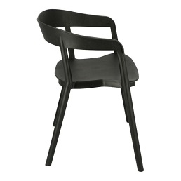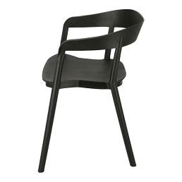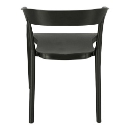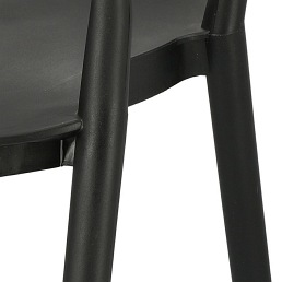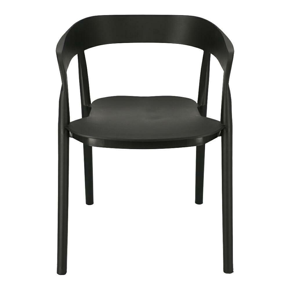 Krzesło Bow to nowoczesne polipropylenowe krzesło. Oparcie krzesła delikatnie przechodzi w podłokietniki tworząc przy tym wytrzymałą konstrukcję. Całe krzesło zostało zrobione z tworzywa w kolorze czarnym. Wsporniki łączące siedzisko z oparciem wyglądają jakby były przedłużeniem nóg krzesła. Krzesła się sztaplują. Max. obciążenie: 120kg. Wymiary kartonu: 67x58x90cm Max. ilość szt. w kartonie:4