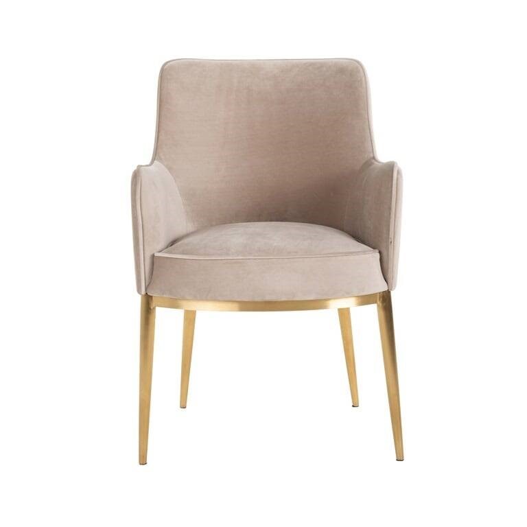 - Siedzisko wykończono aksamitną welurową tapicerką w beżowym odcieniu.