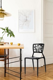 Krzesło Bush wykonane zostało z przyjemnego w dotyku polipropylenu. Jest to materiał łatwy w utrzymaniu w czystości jak również odporny na uszkodzenia mechaniczne. Krzesło Bush to ciekawa propozycja do nowoczesnych odważnych wnętrz oraz ciekawy element dekoracyjny. Dzięki przeplatającym się liniom na oparciu krzesło zostanie zauważone we wnętrzu. Mimo oryginalnej stylistyki krzesło zaskakuje ergonomią oraz komfortem użytkowania. Max. obciążenie: 120 kg