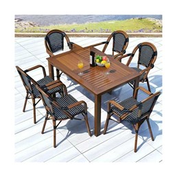 Krzesło CAFE PARIS ARM to doskonały wybór, który łączy wygodę i styl w Twoim ogrodzie. To ponadczasowe krzesło z podłokietnikami, inspirowane stylem paryskich kawiarni, jest lekkie i funkcjonalne. Wykonane w całości z aluminium z efektem drewna orzechowego. Siedzisko i oparcie zostały wykonane z wysokiej jakości wikliny syntetycznej, która jest odporna na promieniowanie UV, co sprawia, że krzesło zachowuje swój pierwotny wygląd nawet pod wpływem intensywnego słońca. Dzięki możliwości sztaplowania do 10 sztuk, krzesło staje się nie tylko estetycznym elementem wyposażenia, ale także praktycznym rozwiązaniem do ogródka czy restauracji.