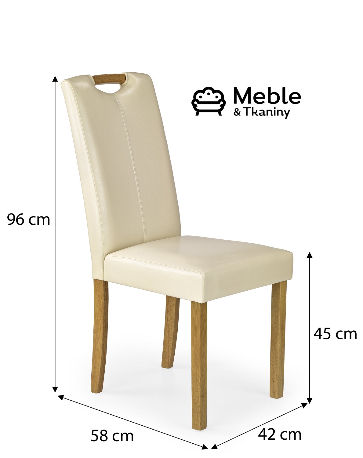 CARO to typowe krzesło salonowe. Stelaż wykończony kolorem drewna bukowego w połączeniu z ekoskórą koloru kremowego nada sznytu dla wysmakowanego wnętrza. U góry oparcia jest odkryty fragment stelaża, który pełni rolę rączki i stanowi ciekawy element stylistyczny.
