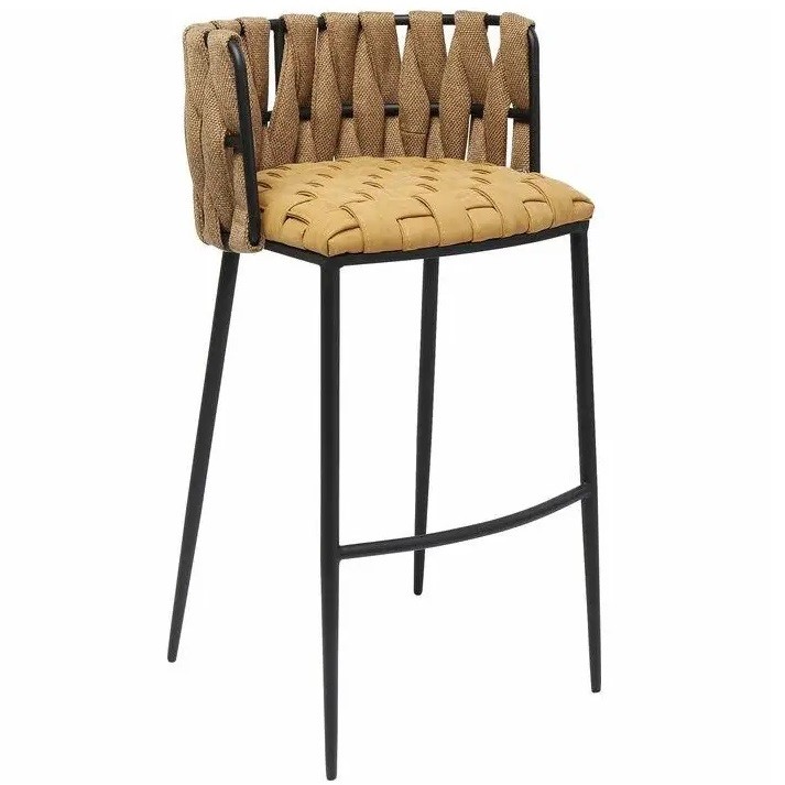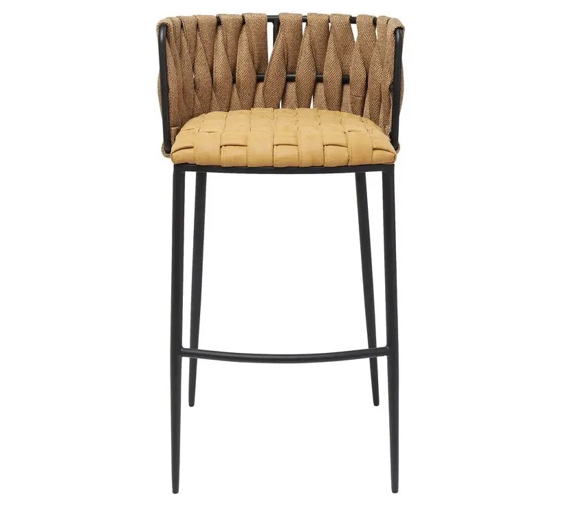 Rustykalnego akcentu dodaje ozdobne, plecione oparcie z płyty wiórowej lakierowanej.