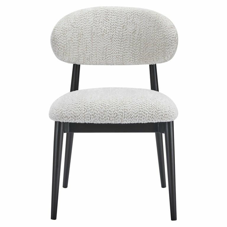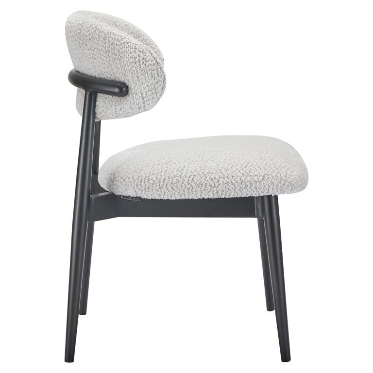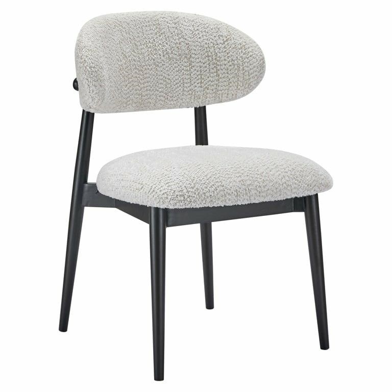 Krzesło Cherry Cream to synonim elegancji i nowoczesnego komfortu. Zaokrąglone kształty i teksturalna tkanina barankowa dodają wnętrzom przytulności i stylu. Solidna konstrukcja z drewna i sklejki gwarantuje trwałość, a kremowy odcień obicia wprowadza delikatność, pięknie współgrając z ciemną podstawą. Idealne do salonu, jadalni lub sypialni w nowoczesnym i minimalistycznym stylu.