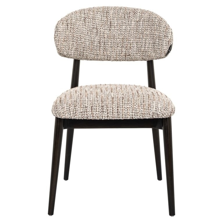 Krzesło Cherry Nature łączy nowoczesny wygląd z wygodą użytkowania, stanowiąc doskonały element w eleganckich i przytulnych wnętrzach. Jego wytrzymały stelaż z drewna i sklejki zapewnia stabilność, a miękka tkanina przypominająca baranek na siedzisku i oparciu gwarantuje komfort. Beżowe obicie w kolorze Be Trendy 01 Nature subtelnie kontrastuje z ciemnym drewnem podstawy, tworząc harmonijną całość. Zaokrąglone kształty i staranne detale wprowadzają ciepło, idealnie komponując się z nowoczesnymi aranżacjami.