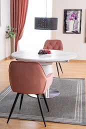 Praktyczne, tapicerowane krzesło, gwarantuje komfort i relaks, jak również idealnie koresponduje z sofą lub narożnikiem w podobnej stylistyce. Wyrób może posłużyć, jako dodatek do stołu w jadalni czy Sali konferencyjnej. Mebel jest odporny na działanie wilgoci. Zdecyduj się na to wyjątkowe krzesło!