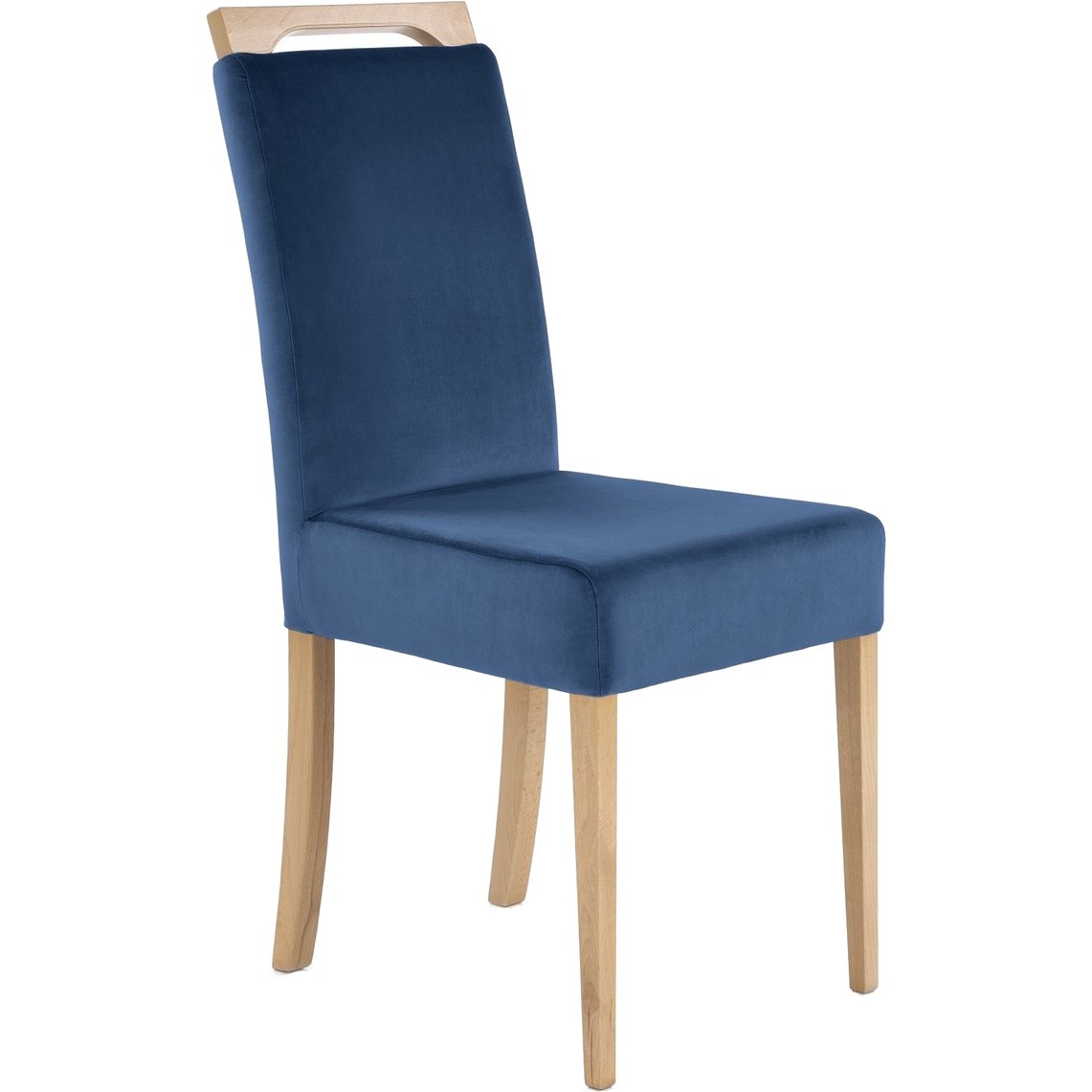 Krzesło CLARION to polski produkt o minimalistycznym designie pasującym do wielu różnych aranżacji. Krzesło jest bardzo wygodne dzięki wyściełanemu oparciu i siedzisku. Do pokrycia tych elementów użyto granatowej tkaniny, dzięki czemu komfort siedzenia jest wysoki. Zaletą tkaniny jest wysoka trwałość i odporność na zużycie w porównaniu do tapicerki z ekoskóry. Krzesło w górnej części oparcia posiada uchwyt, który umożliwia łatwe przenoszenie i przenoszenie krzesła. Rękojeść i nogi krzesła wykonane są z wytrzymałego materiału - litego buku w ciepłym odcieniu miodowego dębu. Drewniane nóżki zapewniają stabilność podczas użytkowania oraz łatwość odbudowy w przypadku drobnych uszkodzeń tj. zadrapania.