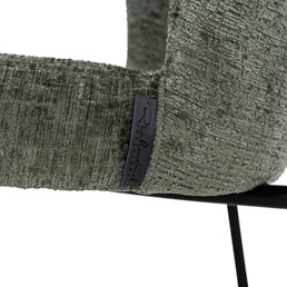 - Siedzisko wykończono aksamitną welurową tapicerką w zielonym odcieniu.