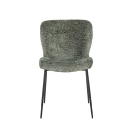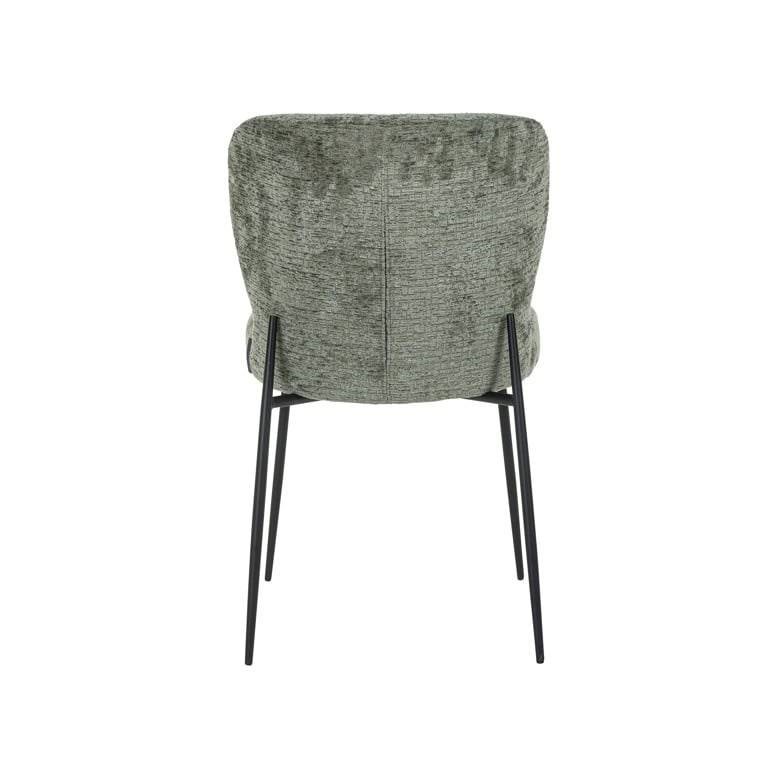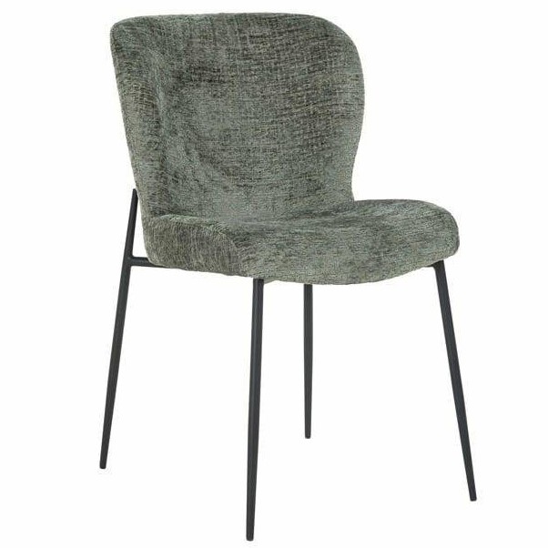 Dzięki smukłej sylwetce, czarnej metalowej podstawie i zgrabnemu siedzisku w pięknym zielonym odcieniu.