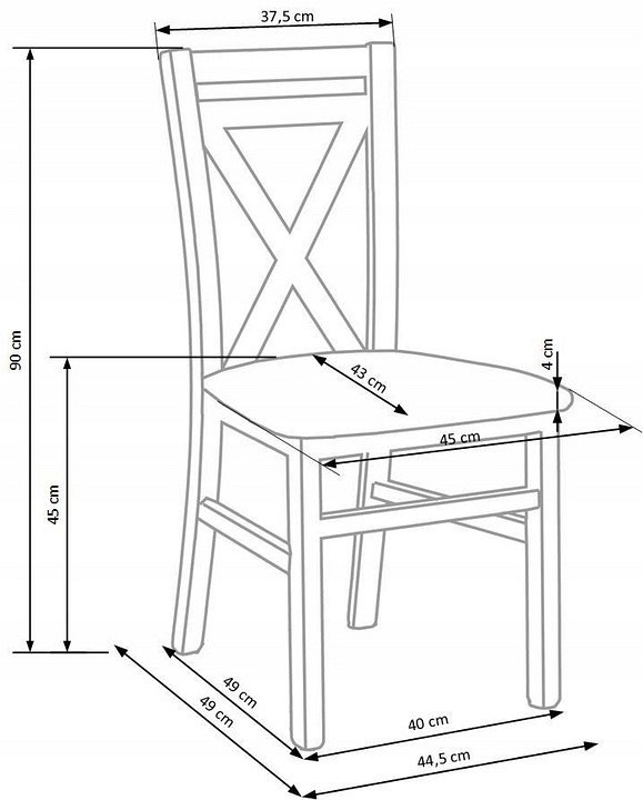 DARIUSZ to przedstawiciel stylu skandynawskiego cechującego się prostotą i minimalizmem. Stelaż krzesła wykonany jest z litego drewna bukowego w kilku stylowych wykończeniach. Siedzisko wykonane jest z trwałej płyty MDF. Cechą charakterystyczną jest wypełnienie oparcia dwoma listwami w kształcie litery X.