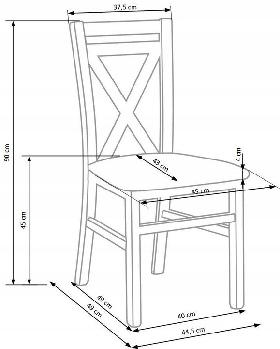 DARIUSZ to przedstawiciel stylu skandynawskiego cechującego się prostotą i minimalizmem. Stelaż krzesła wykonany jest z litego drewna bukowego w dwóch stylowych wykończeniach. Siedzisko wyposażone jest w miękką poduszkę obszytą doskonale dopasowaną tkaniną. Cechą charakterystyczną jest wypełnienie oparcia dwoma listwami w kształcie litery X.