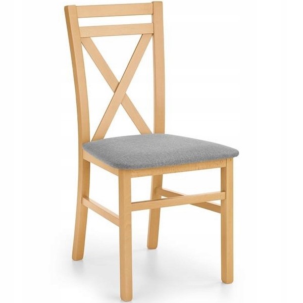 DARIUSZ to przedstawiciel stylu skandynawskiego cechującego się prostotą i minimalizmem. Stelaż krzesła wykonany jest z litego drewna bukowego w dwóch stylowych wykończeniach. Siedzisko wyposażone jest w miękką poduszkę obszytą doskonale dopasowaną tkaniną. Cechą charakterystyczną jest wypełnienie oparcia dwoma listwami w kształcie litery X.